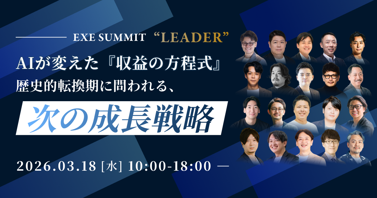 EXE SUMMIT “LEADER”~AIが変えた「収益の方程式」歴史的転換期に問われる、次の成長戦略にて、株式会社マテリアルデジタル取締役 川端康介が登壇いたします。